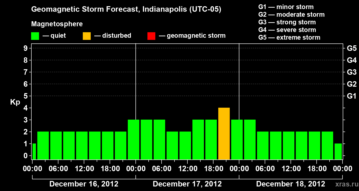 Geomagnetic storm forecast in Indianapolis for Dec 16, 2012