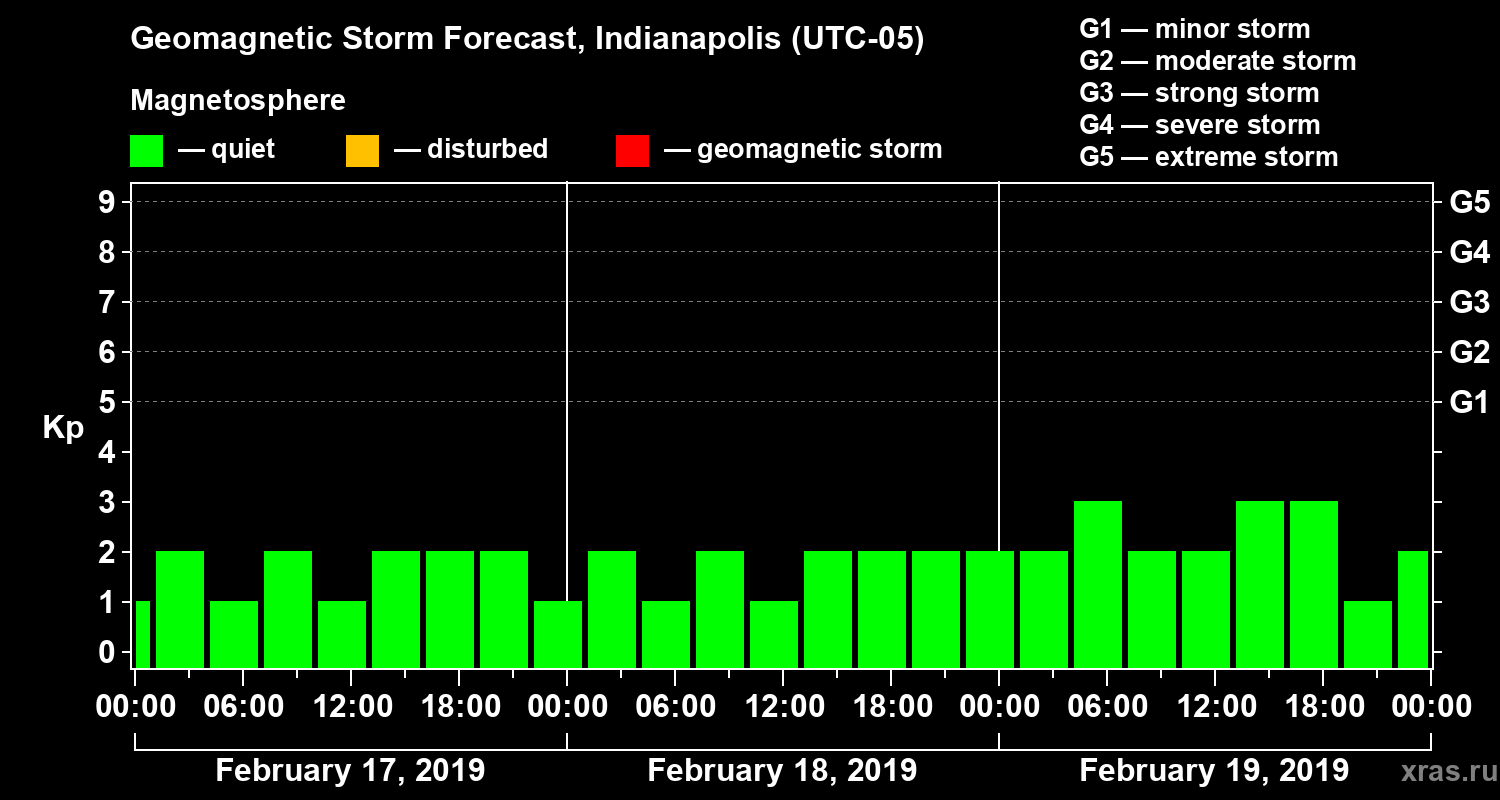 Geomagnetic activity forecast in Indianapolis — Feb 17, 2019
