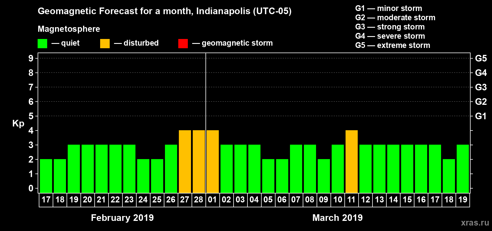 Geomagnetic storm forecast in Indianapolis for Feb 17, 2019