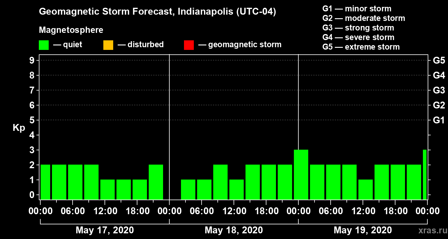 Geomagnetic activity forecast in Indianapolis — May 17, 2020