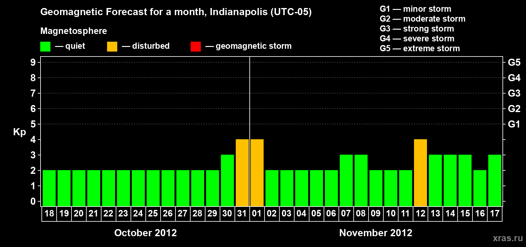 Geomagnetic storm forecast in Indianapolis for Oct 18, 2012