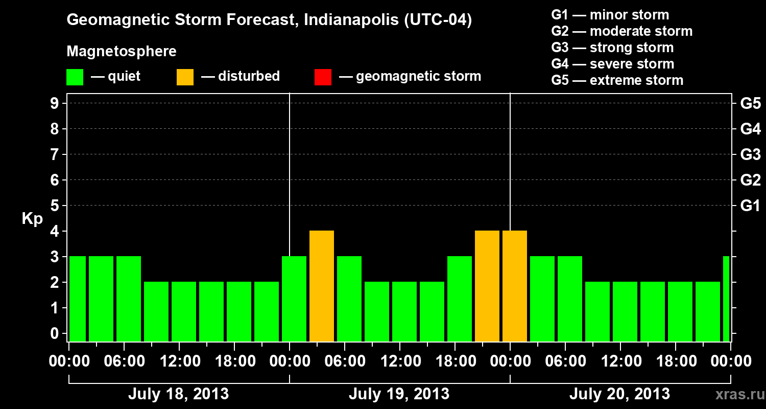 Geomagnetic storm forecast in Indianapolis for Jul 18, 2013