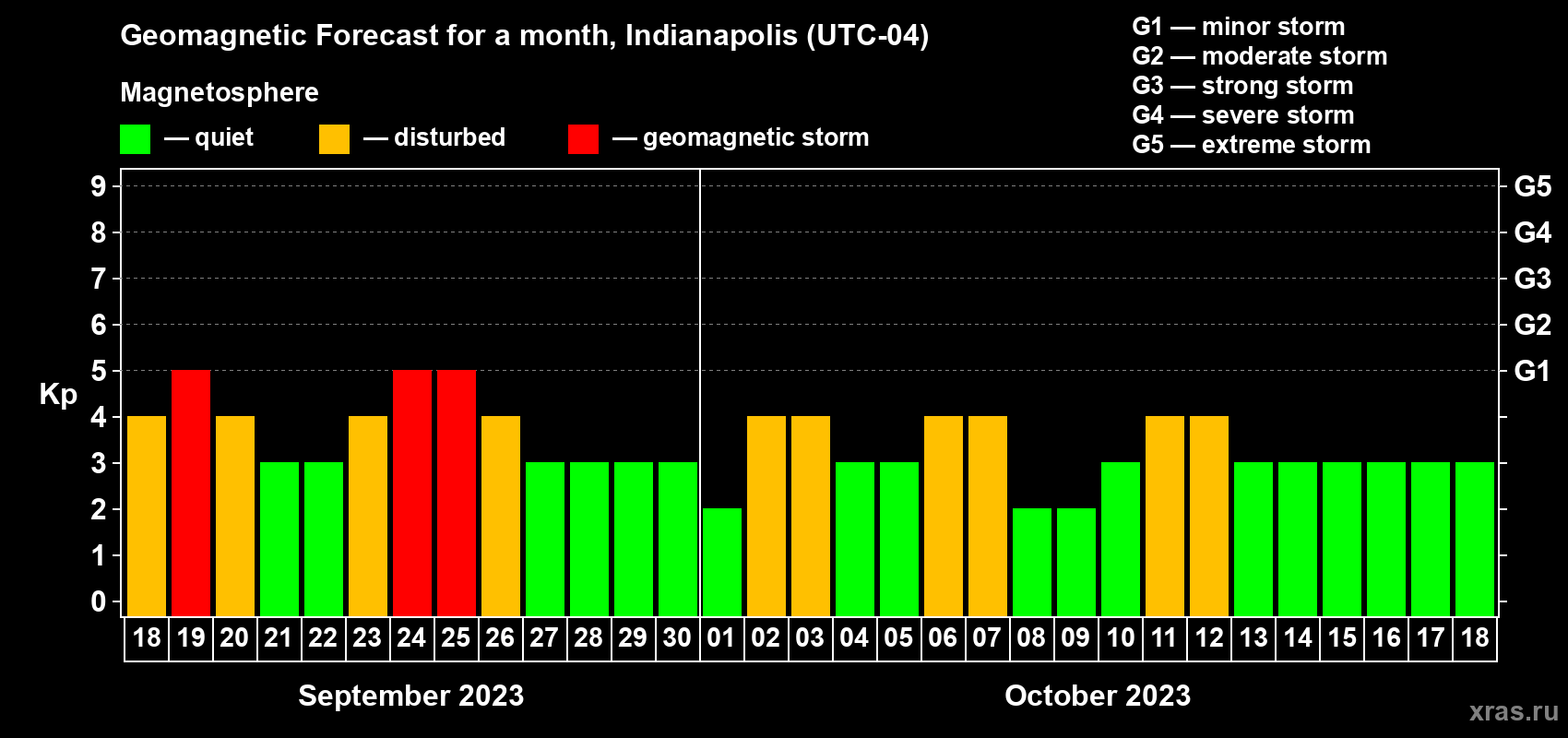 Geomagnetic storm forecast in Indianapolis for Sep 18, 2023