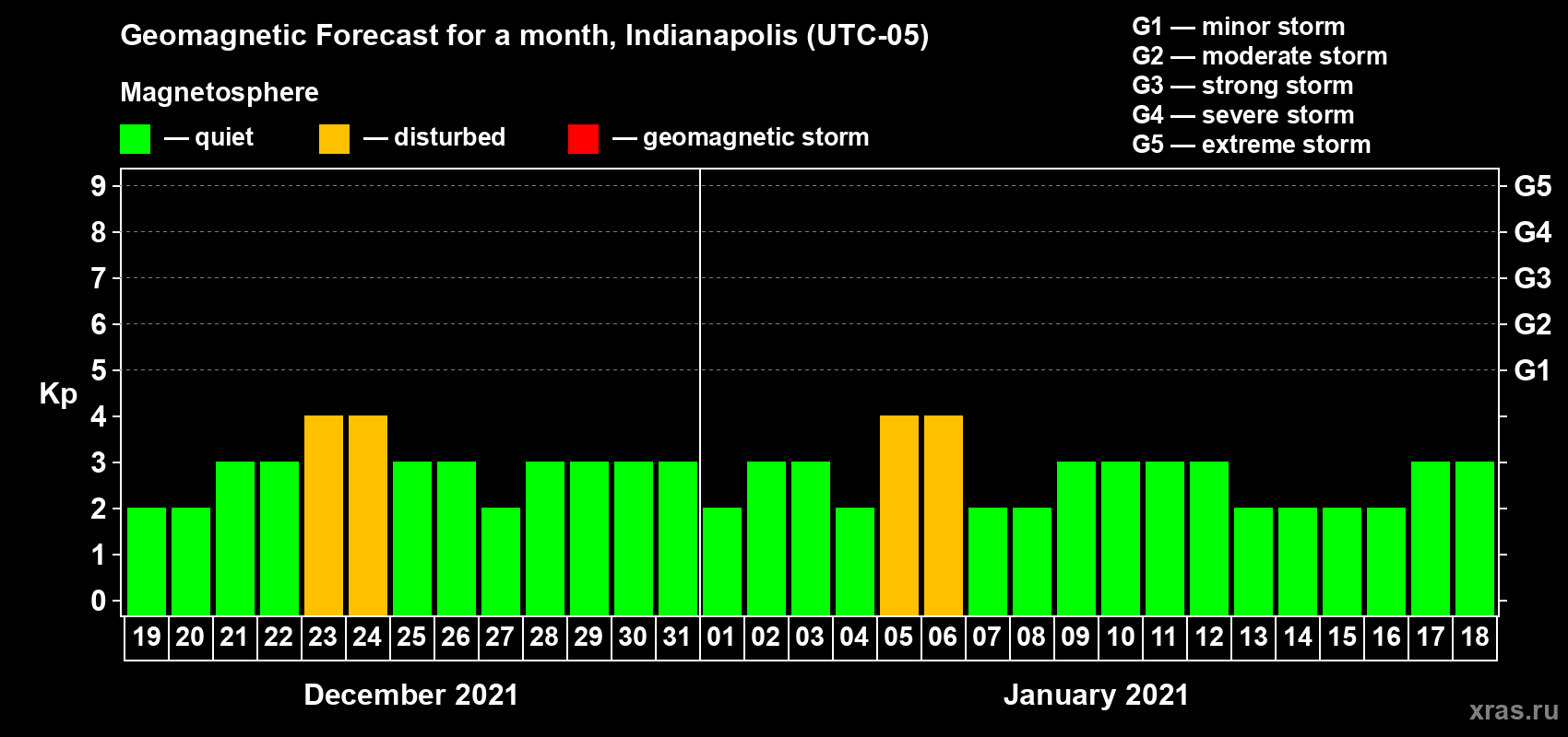 Geomagnetic activity forecast in Indianapolis — Dec 19, 2020