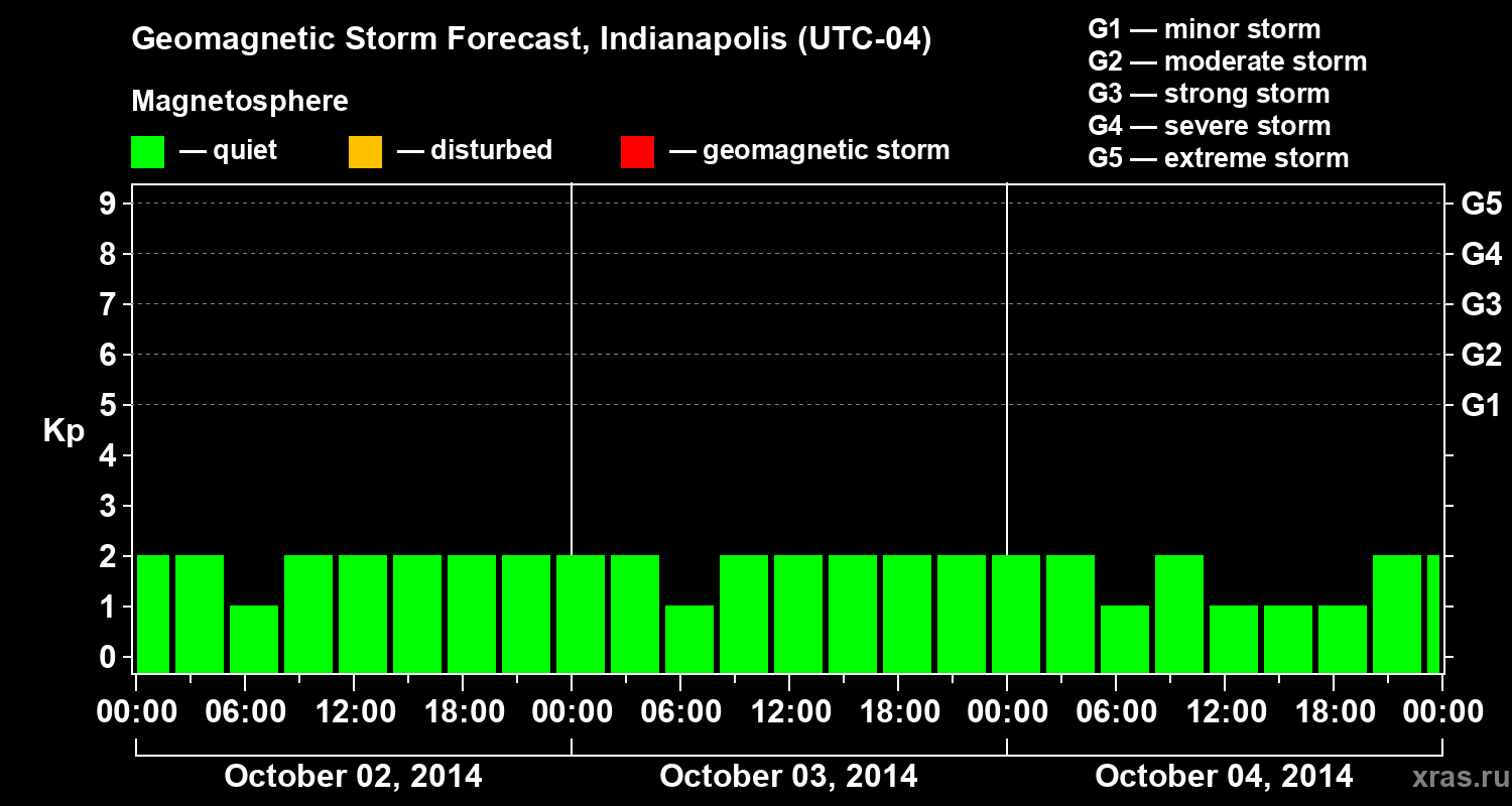 Geomagnetic storm forecast in Indianapolis for Oct 02, 2014