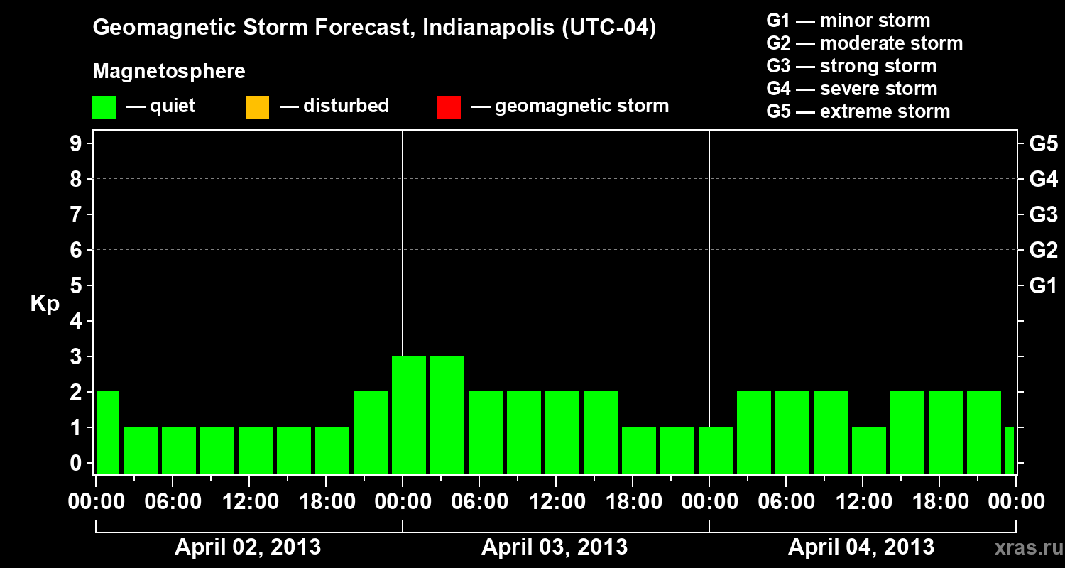 Geomagnetic storm forecast in Indianapolis for Apr 02, 2013