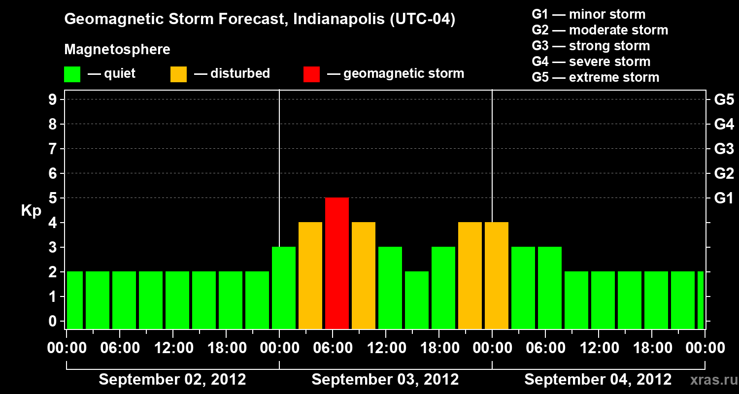 Geomagnetic storm forecast in Indianapolis for Sep 02, 2012