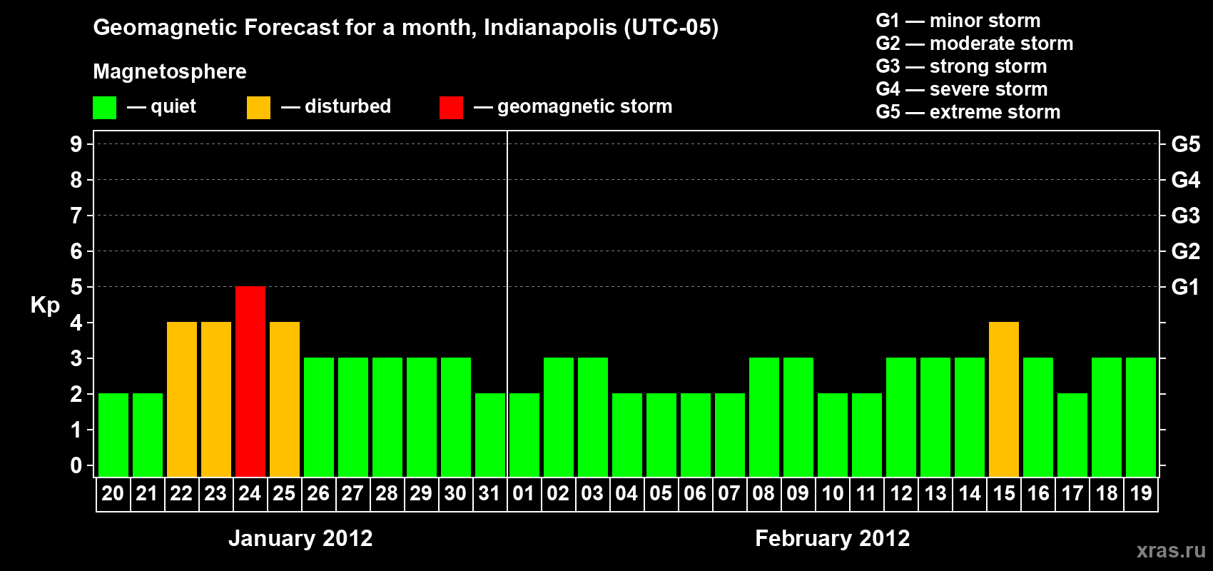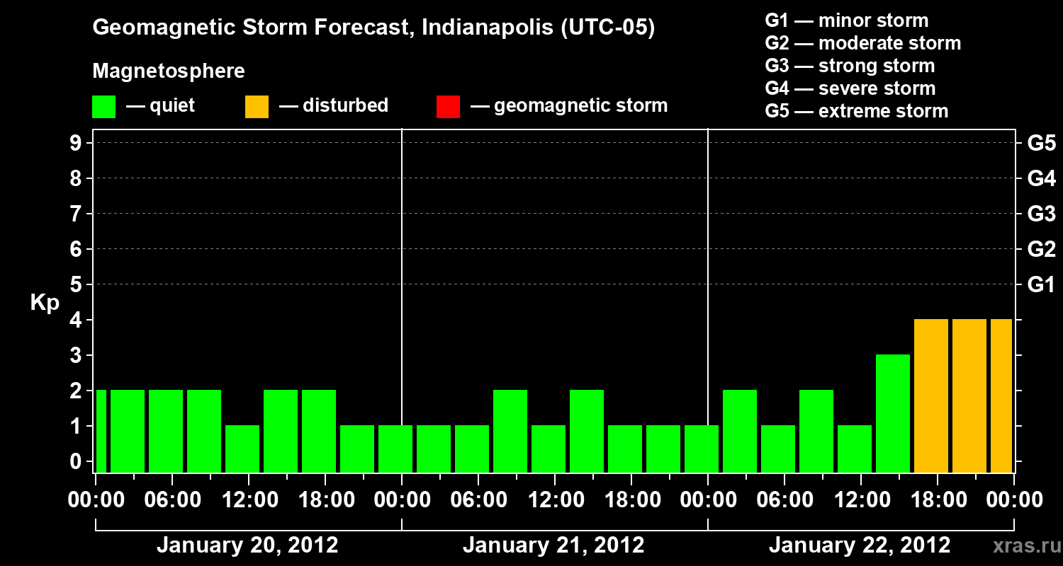 Geomagnetic storm forecast in Indianapolis for Jan 20, 2012