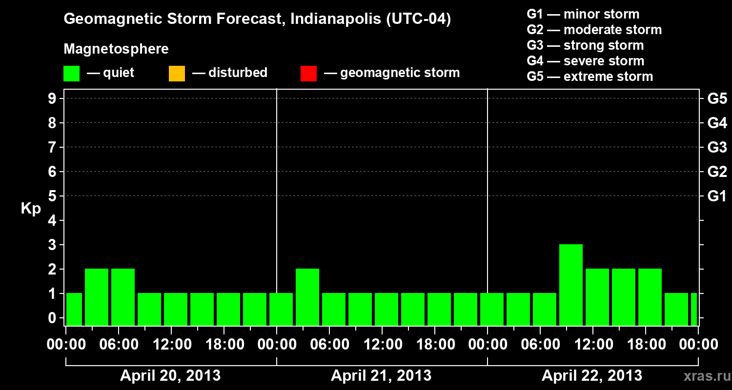 Geomagnetic storm forecast in Indianapolis for Apr 20, 2013