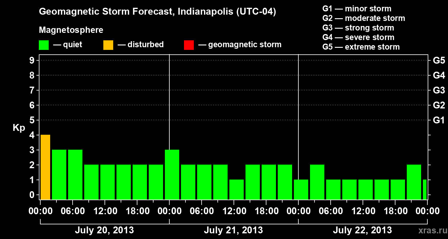Geomagnetic storm forecast in Indianapolis for Jul 20, 2013