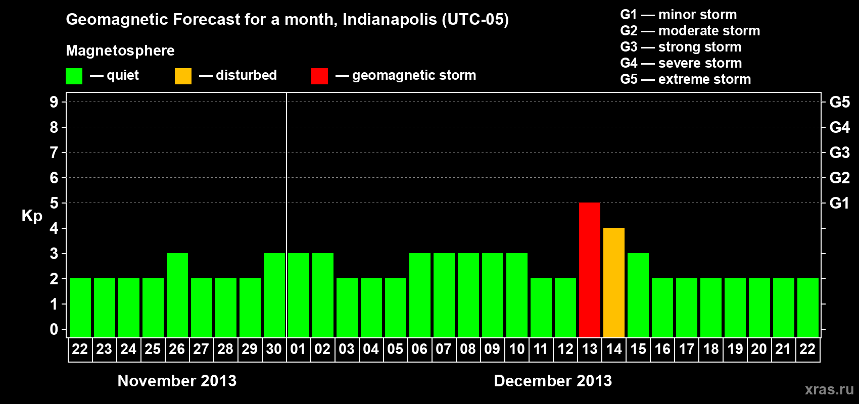 Geomagnetic storm forecast in Indianapolis for Nov 22, 2013