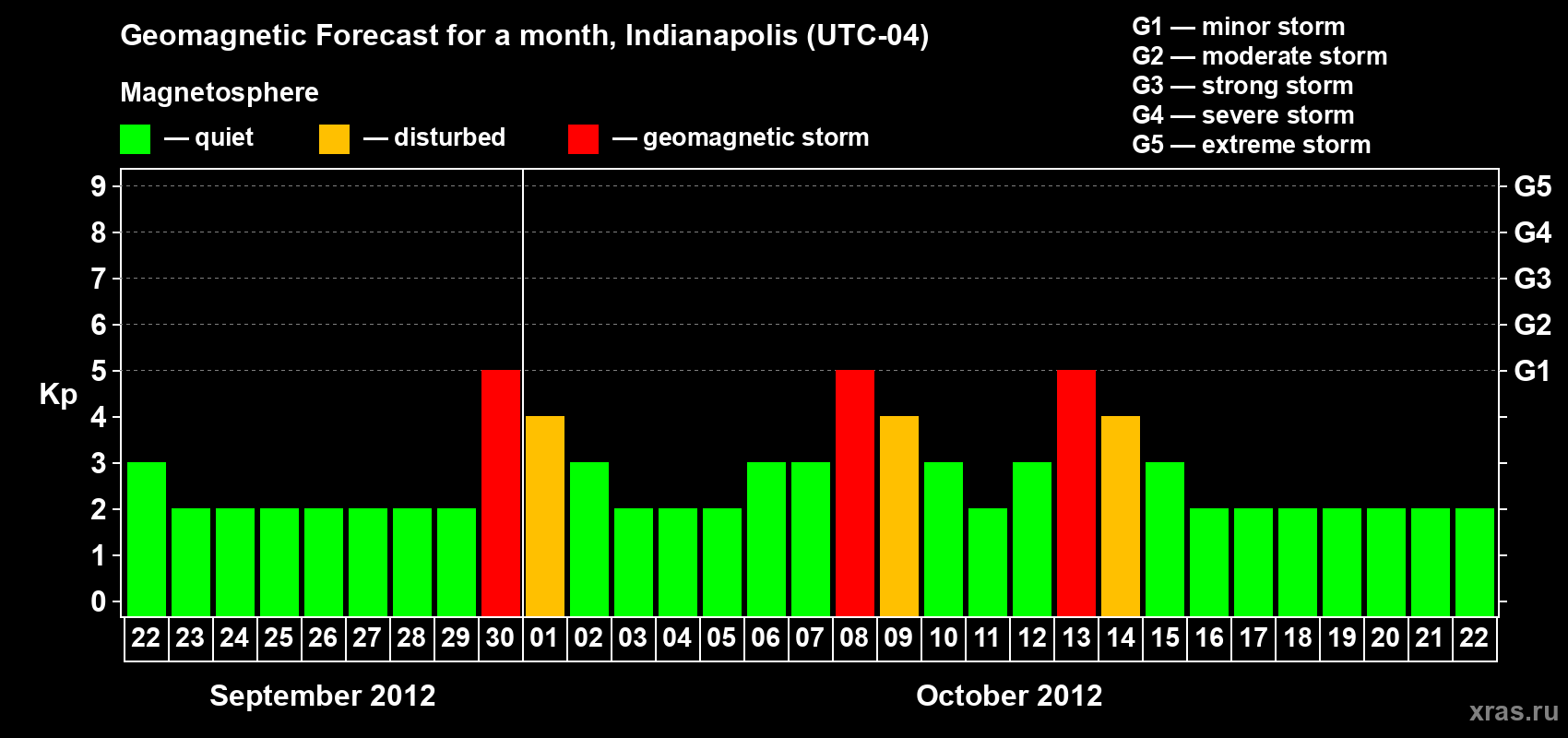 Geomagnetic storm forecast in Indianapolis for Sep 22, 2012