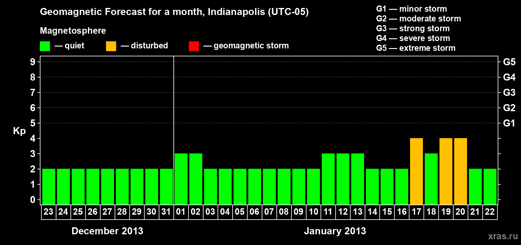 Geomagnetic storm forecast in Indianapolis for Dec 23, 2012
