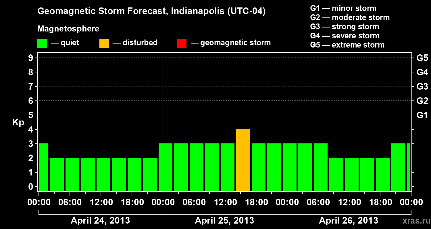 Geomagnetic storm forecast in Indianapolis for Apr 24, 2013