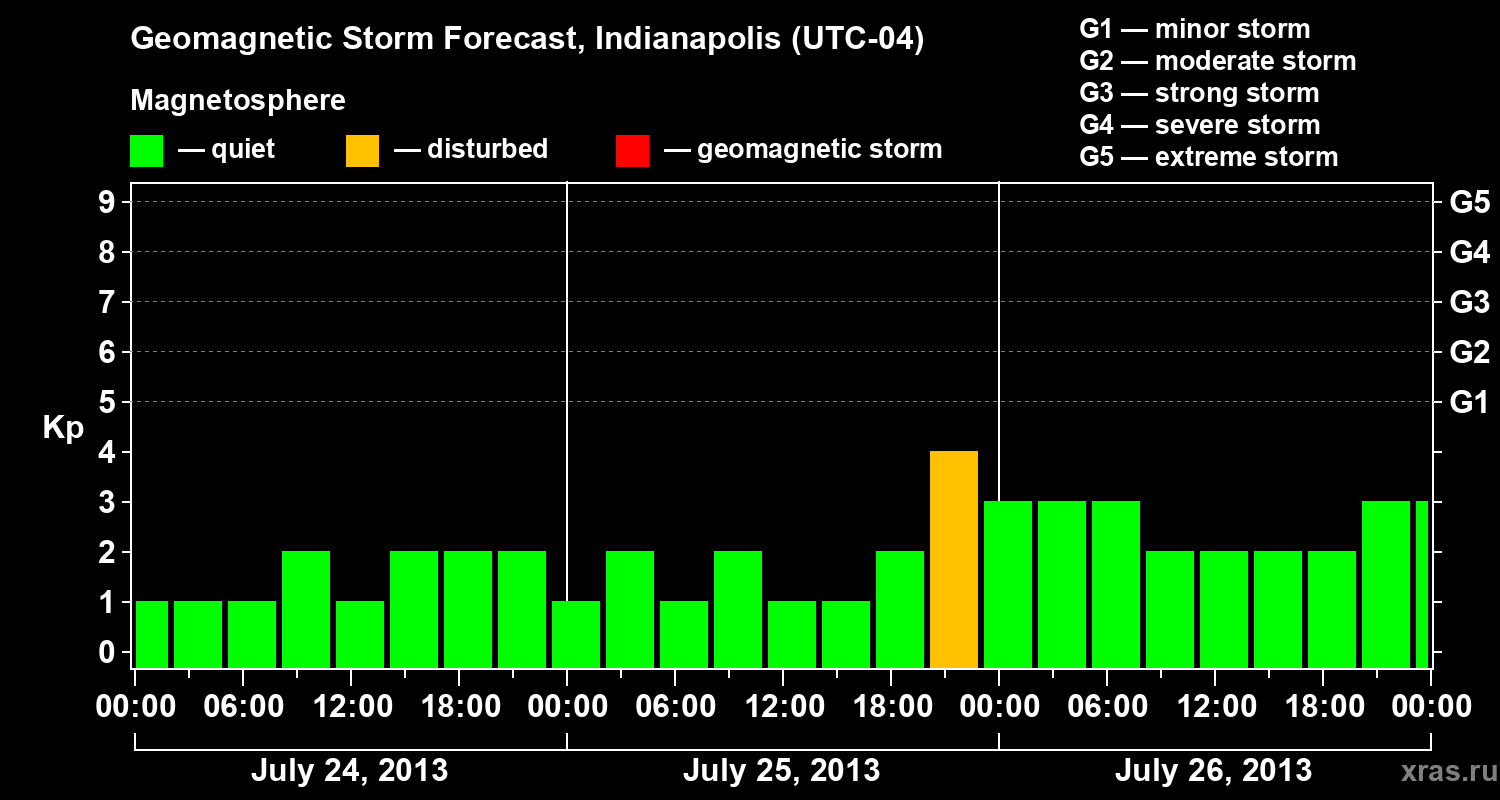 Geomagnetic storm forecast in Indianapolis for Jul 24, 2013