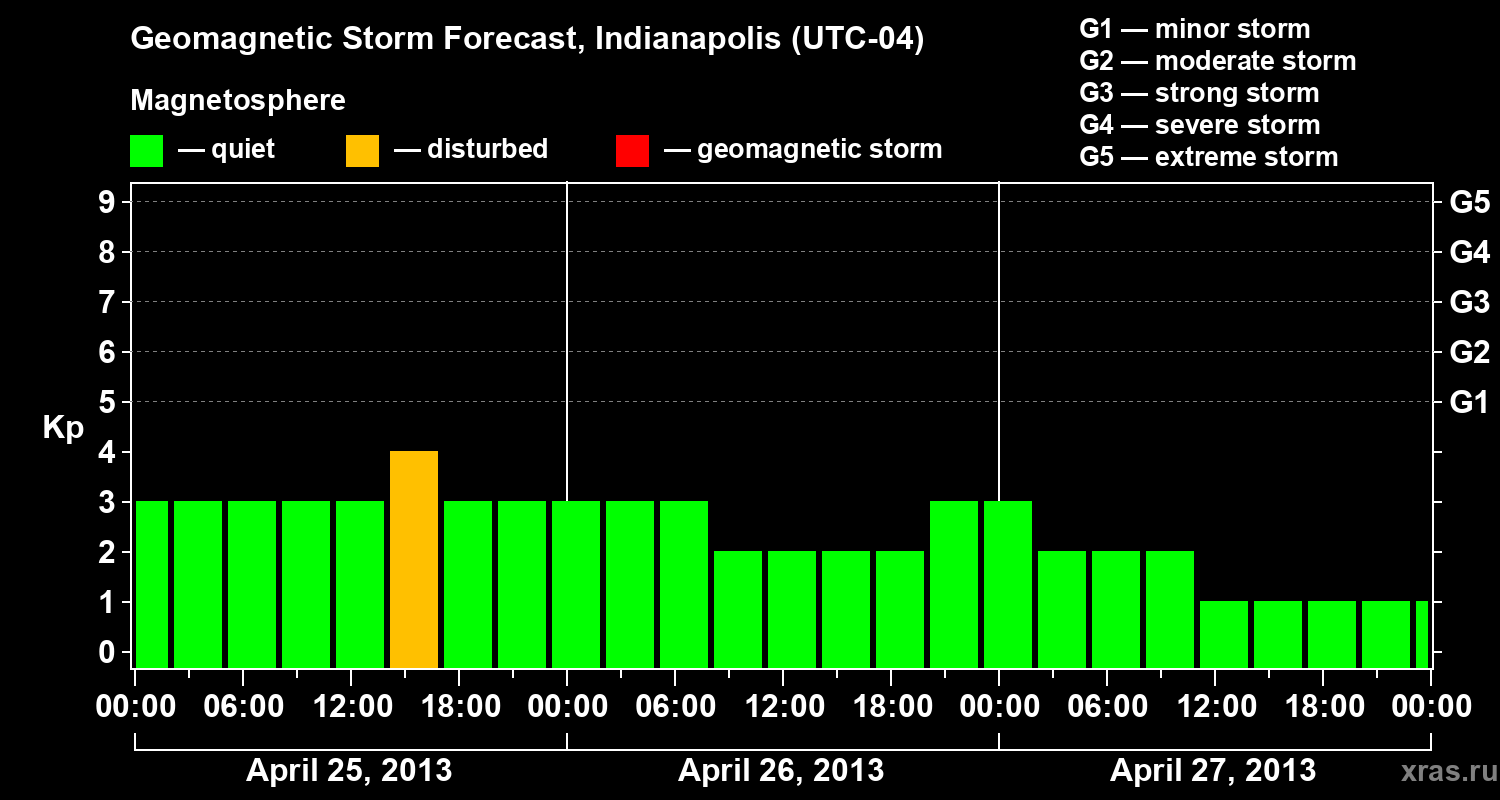 Geomagnetic storm forecast in Indianapolis for Apr 25, 2013