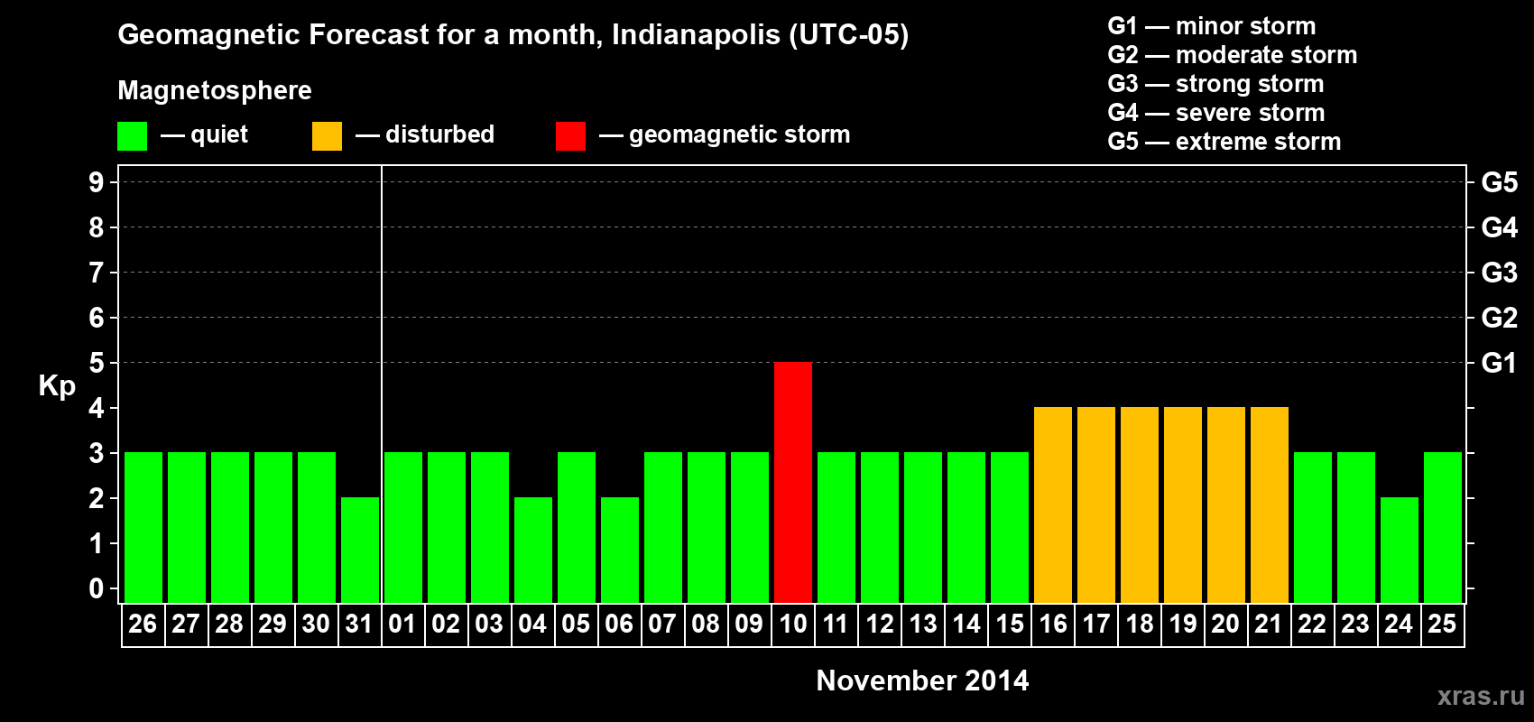 Geomagnetic storm forecast in Indianapolis for Oct 26, 2014