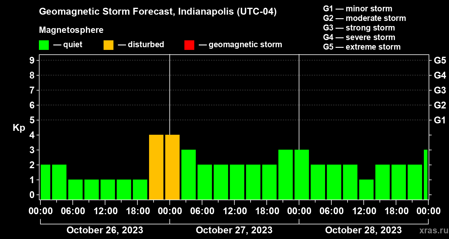 Geomagnetic storm forecast in Indianapolis for Oct 26, 2023