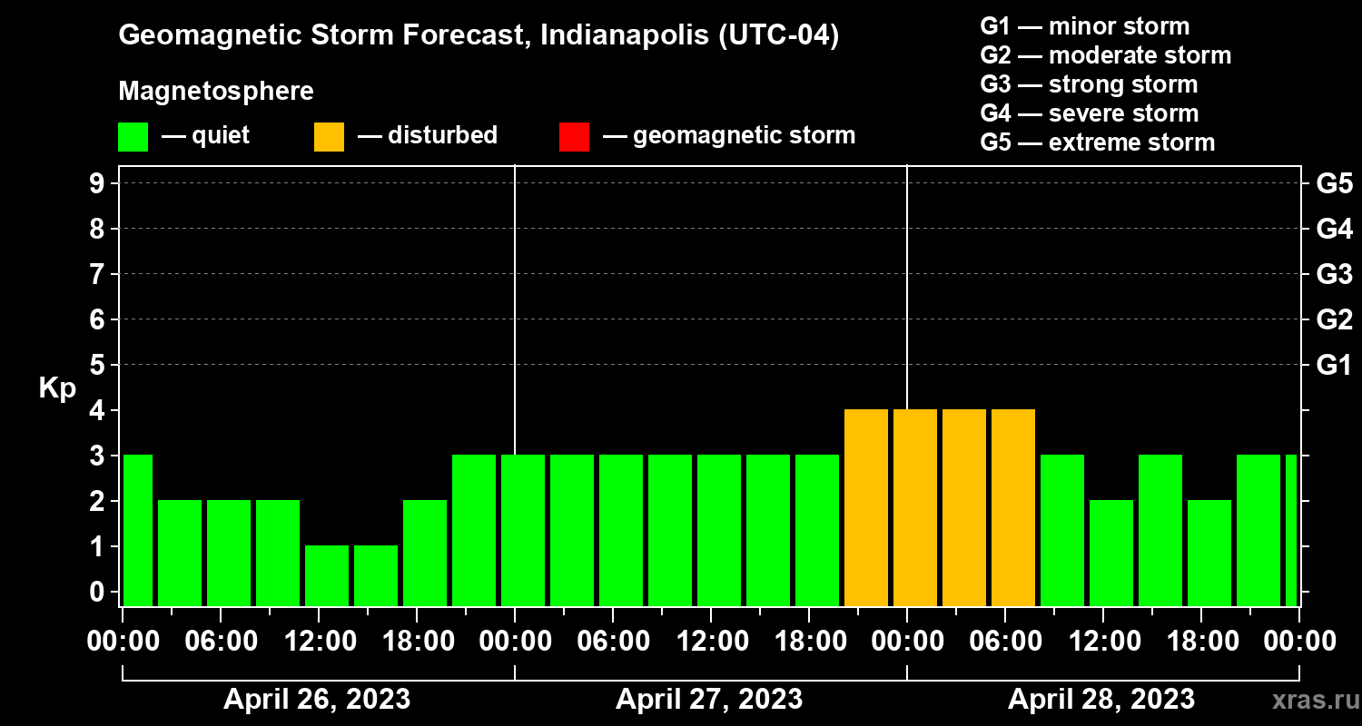 Geomagnetic storm forecast in Indianapolis for Apr 26, 2023