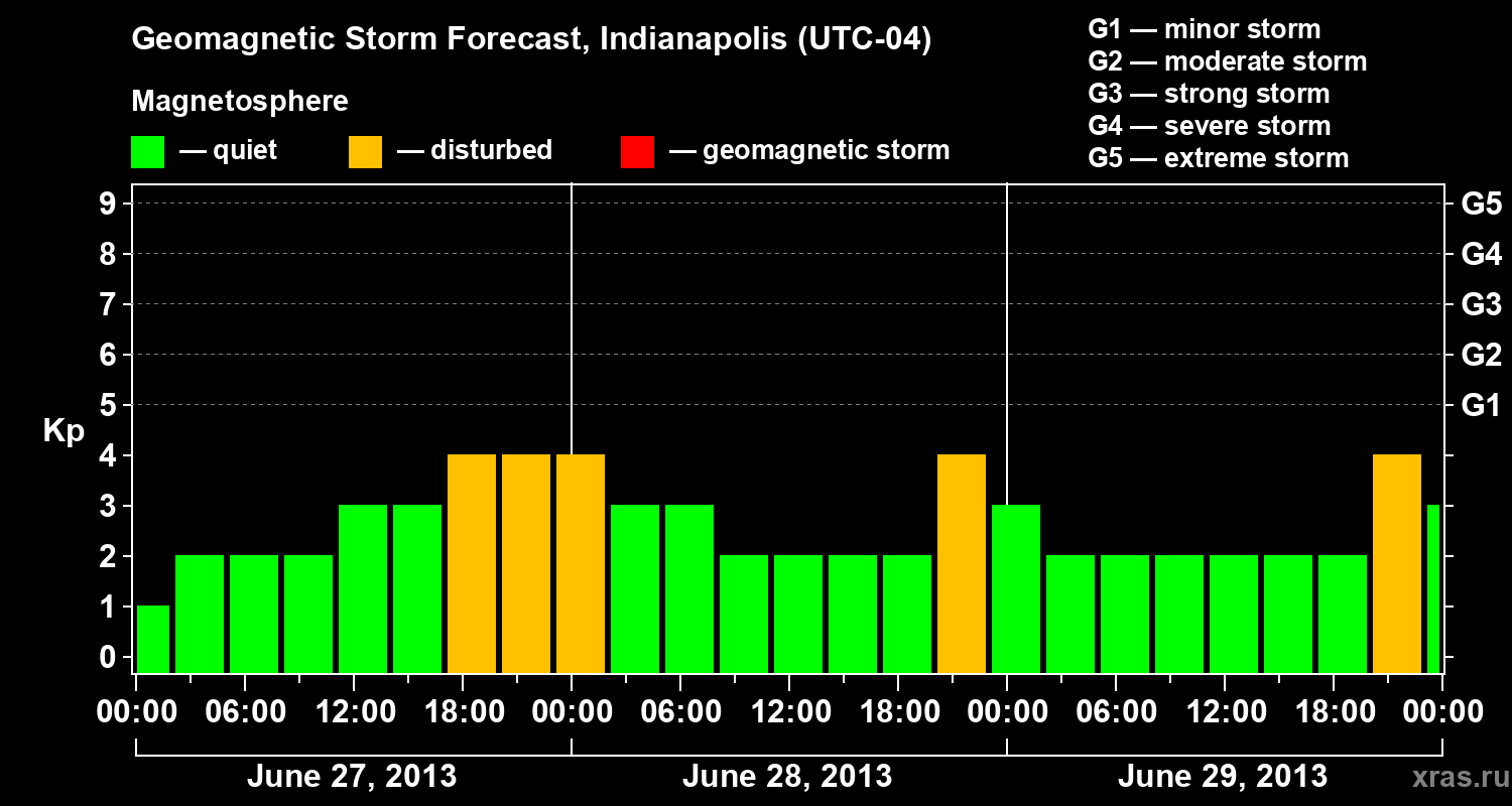 Geomagnetic storm forecast in Indianapolis for Jun 27, 2013