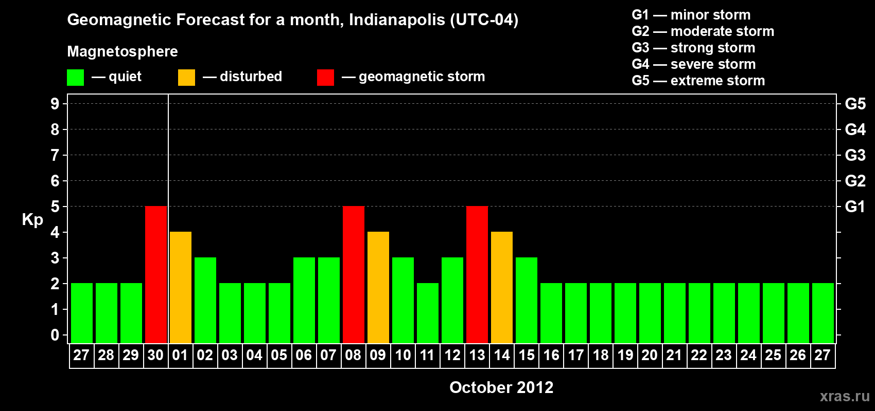 Geomagnetic storm forecast in Indianapolis for Sep 27, 2012