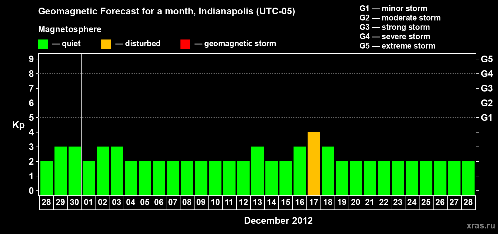 Geomagnetic storm forecast in Indianapolis for Nov 28, 2012