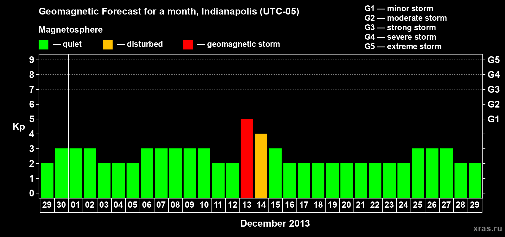 Geomagnetic storm forecast in Indianapolis for Nov 29, 2013