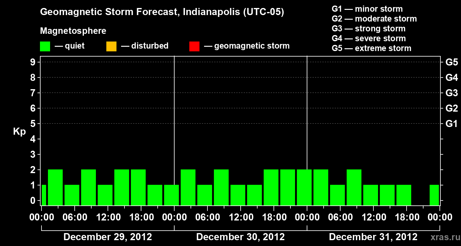 Geomagnetic storm forecast in Indianapolis for Dec 29, 2012