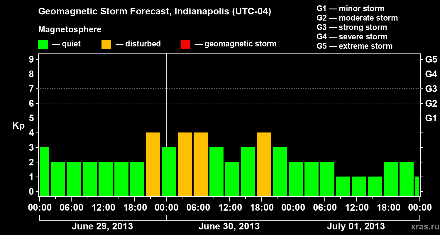 Geomagnetic storm forecast in Indianapolis for Jun 29, 2013