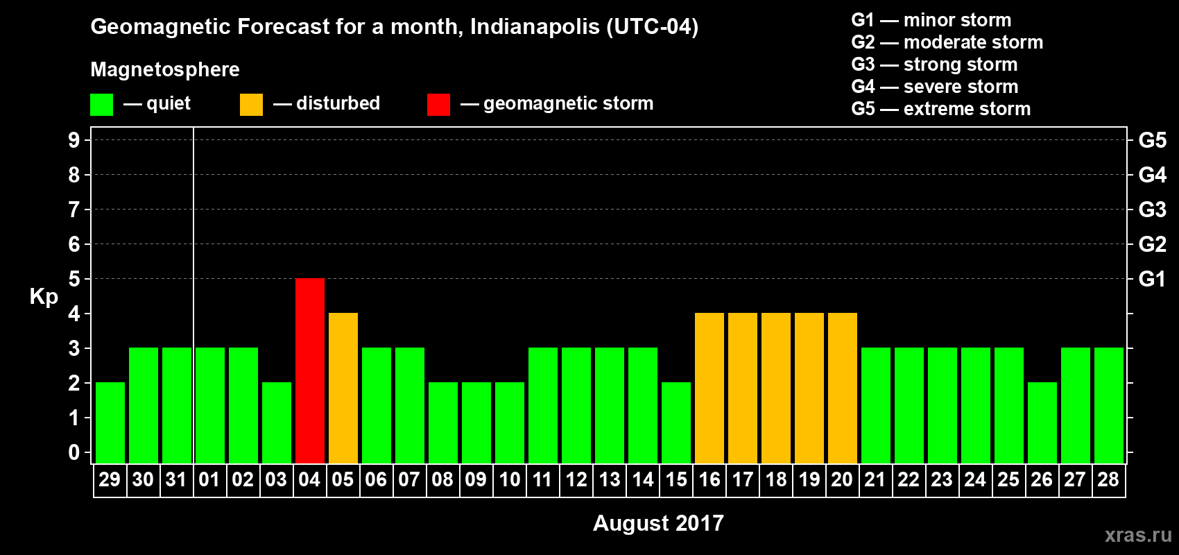 Geomagnetic storm forecast in Indianapolis for Jul 29, 2017
