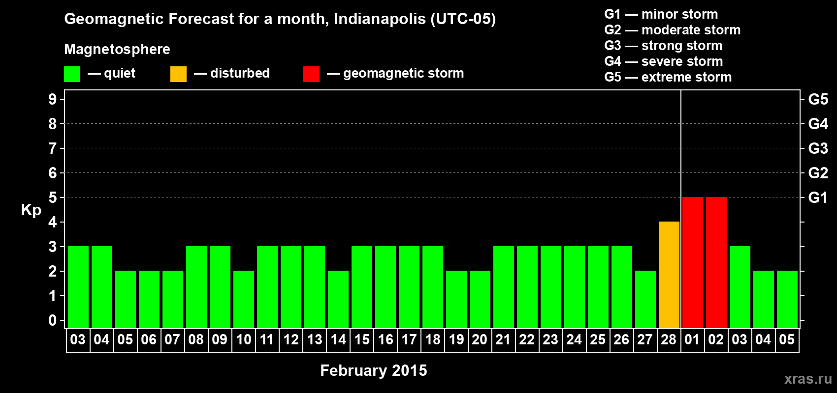 Geomagnetic storm forecast in Indianapolis for Feb 03, 2015