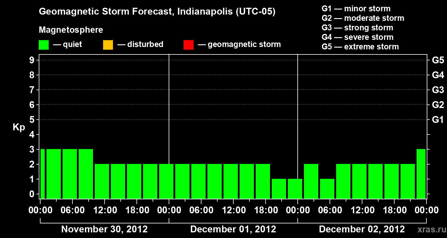Geomagnetic storm forecast in Indianapolis for Nov 30, 2012