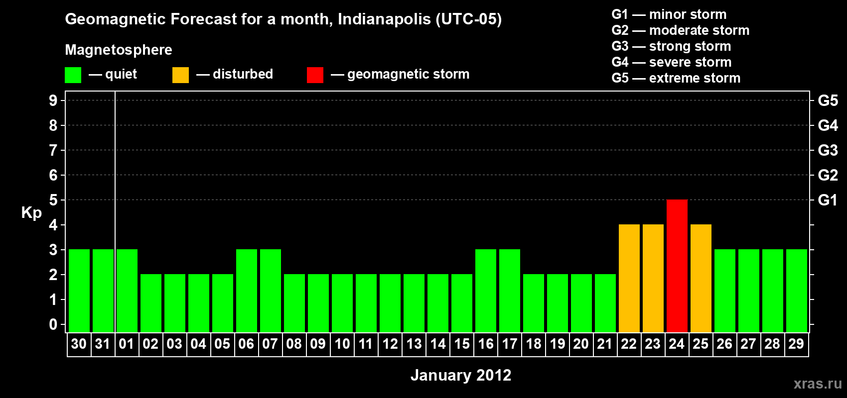 Geomagnetic storm forecast in Indianapolis for Dec 30, 2011