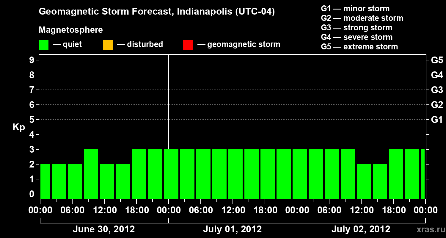 Geomagnetic storm forecast in Indianapolis for Jun 30, 2012