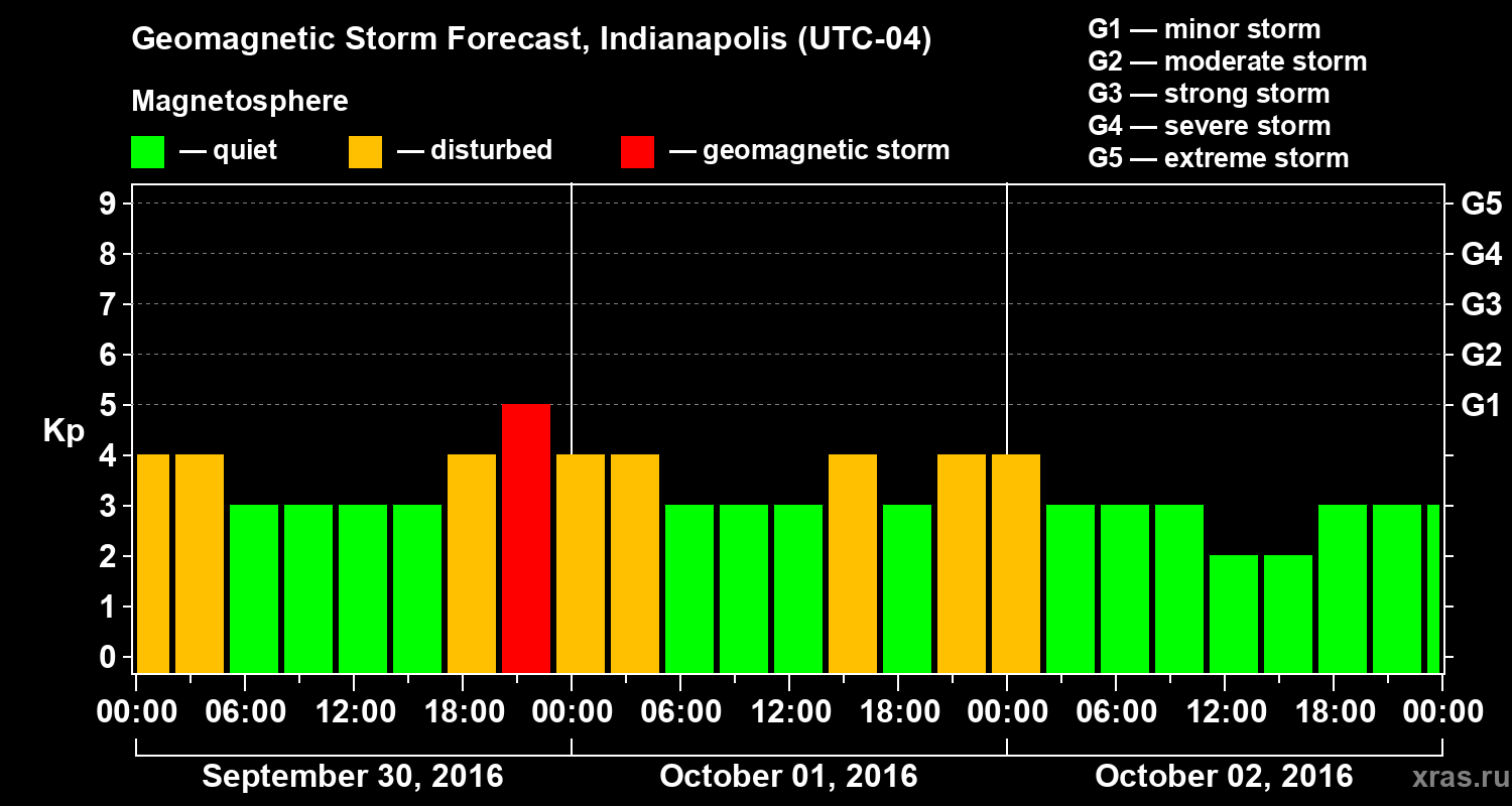 Geomagnetic storm forecast in Indianapolis for Sep 30, 2016