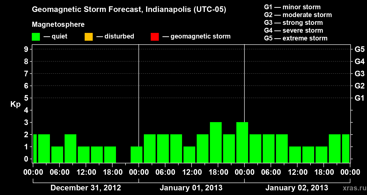 Geomagnetic storm forecast in Indianapolis for Dec 31, 2012