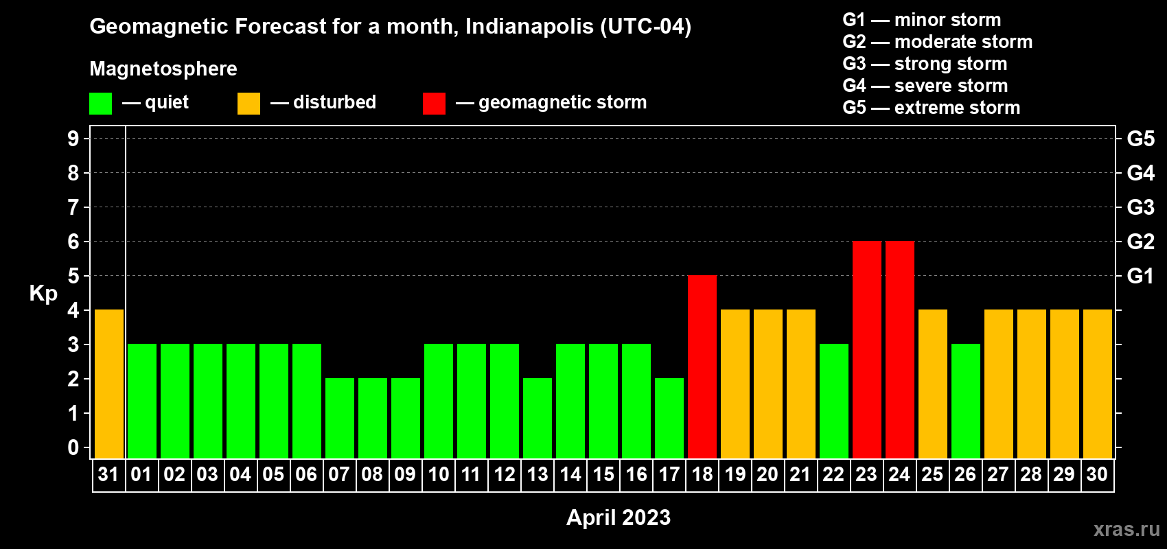 Geomagnetic storm forecast in Indianapolis for Mar 31, 2023