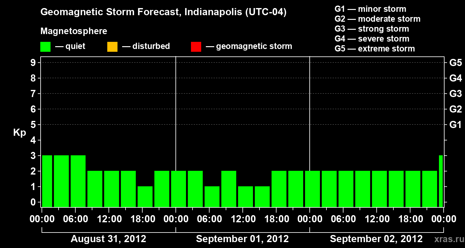 Geomagnetic storm forecast in Indianapolis for Aug 31, 2012