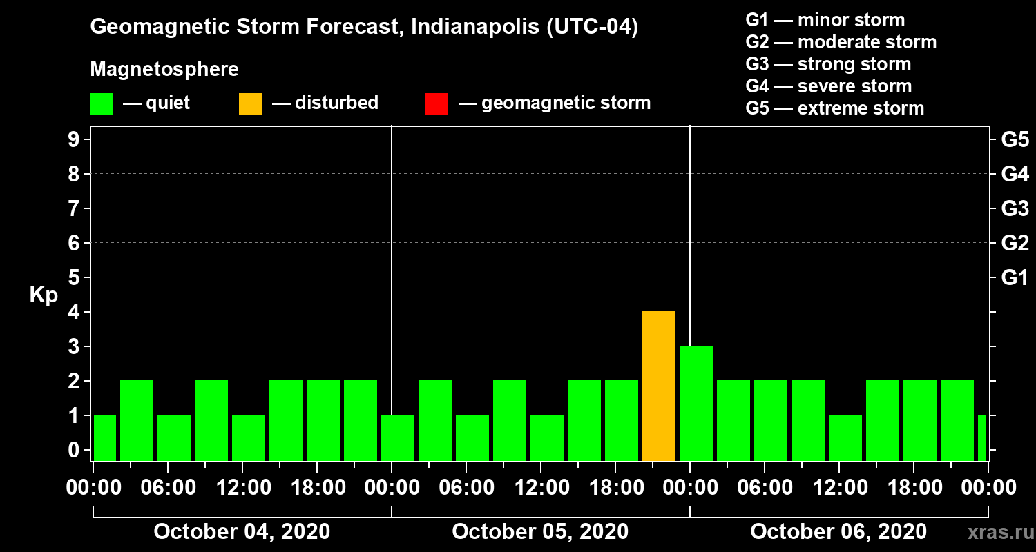 Geomagnetic activity forecast in Indianapolis — Oct 04, 2020