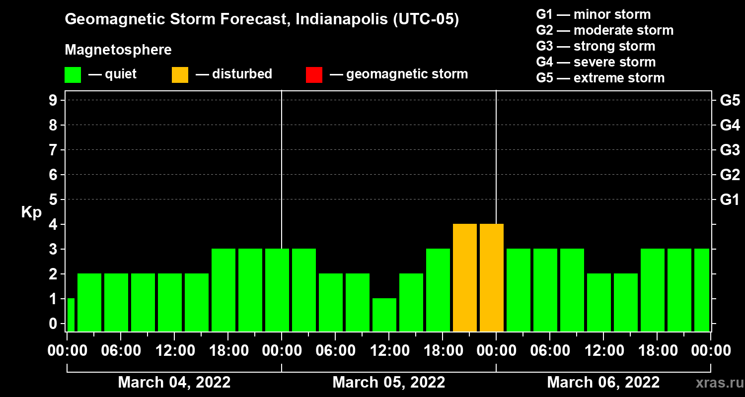 Geomagnetic storm forecast in Indianapolis for Mar 04, 2022