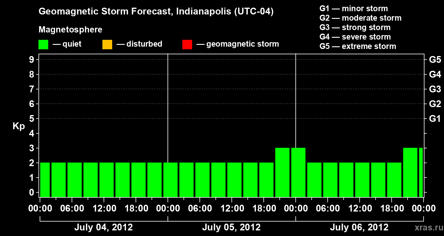 Geomagnetic storm forecast in Indianapolis for Jul 04, 2012