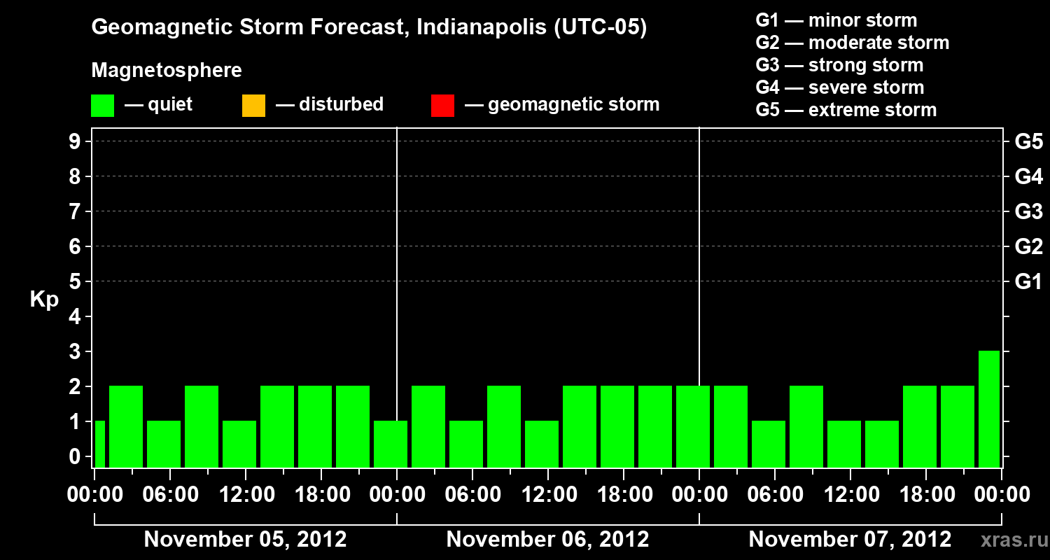 Geomagnetic storm forecast in Indianapolis for Nov 05, 2012