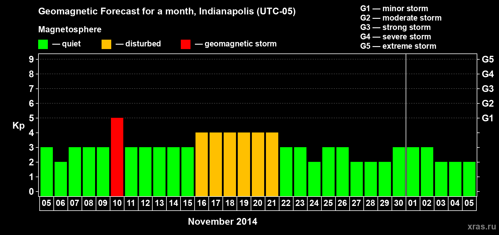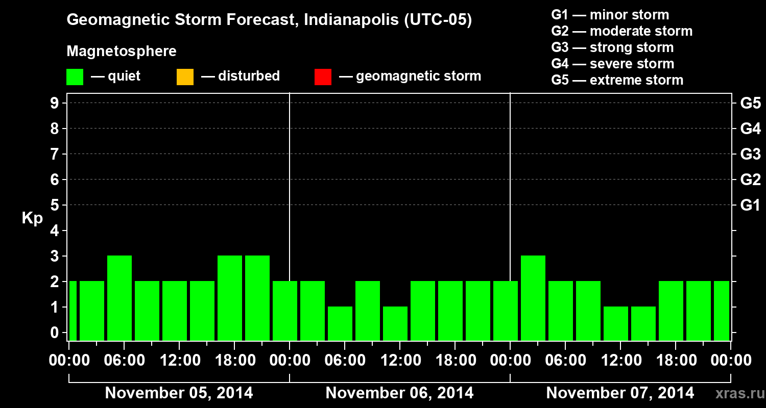 Geomagnetic storm forecast in Indianapolis for Nov 05, 2014