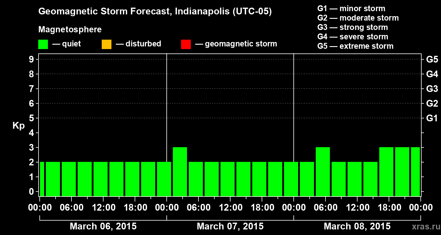 Geomagnetic storm forecast in Indianapolis for Mar 06, 2015