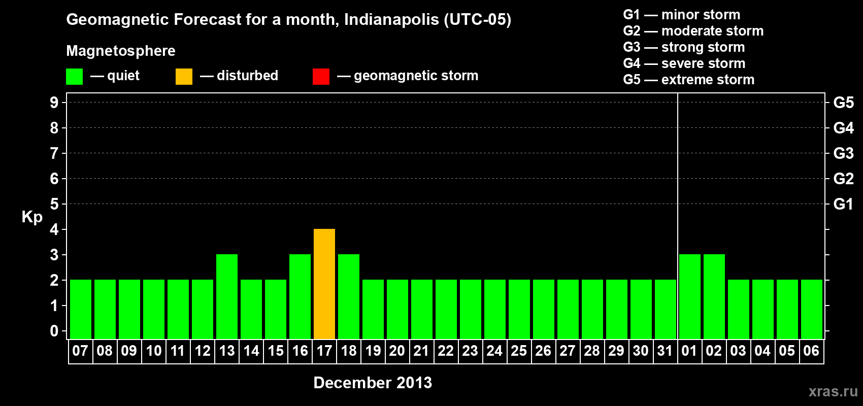 Geomagnetic storm forecast in Indianapolis for Dec 07, 2012