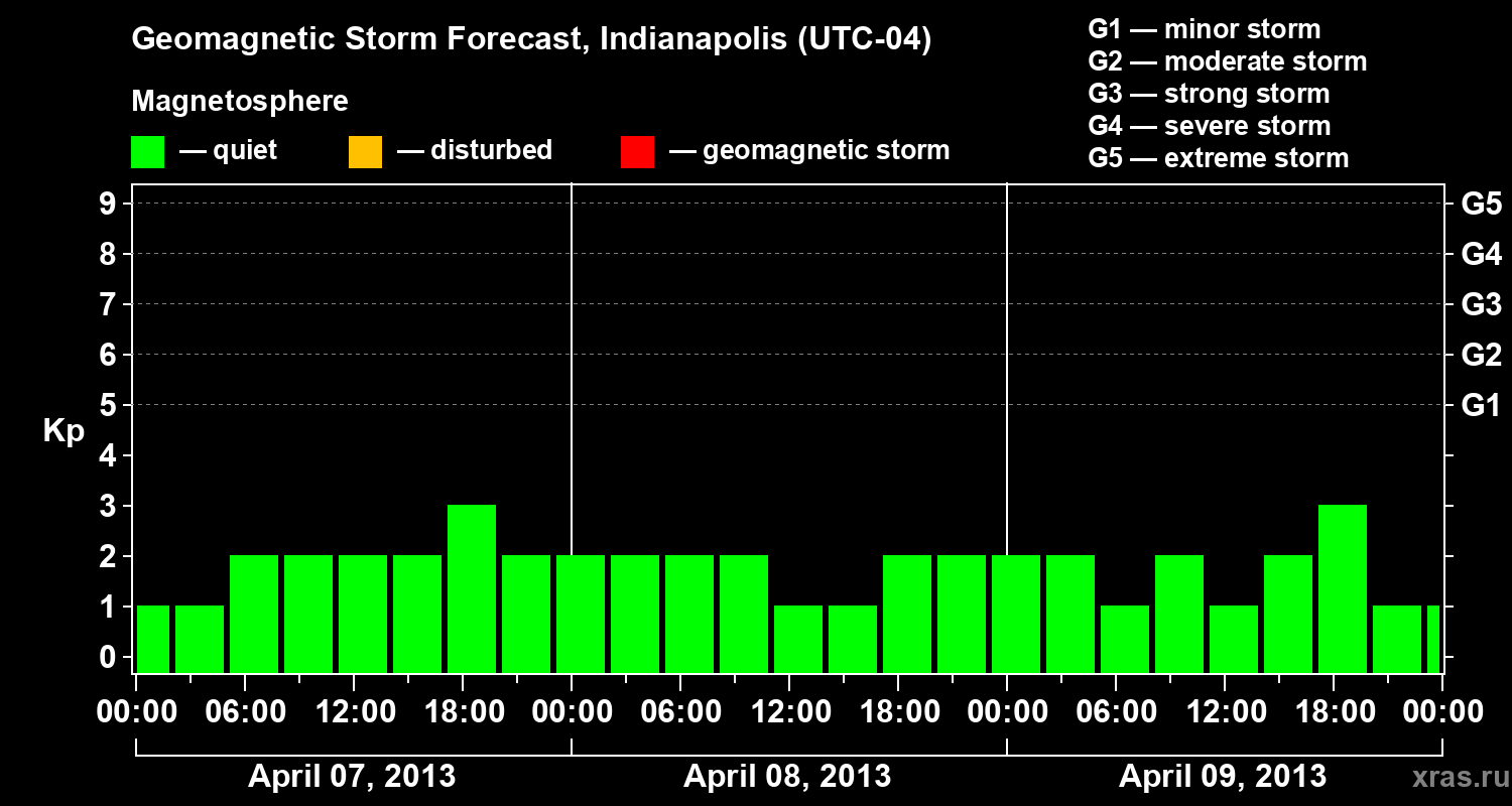 Geomagnetic storm forecast in Indianapolis for Apr 07, 2013