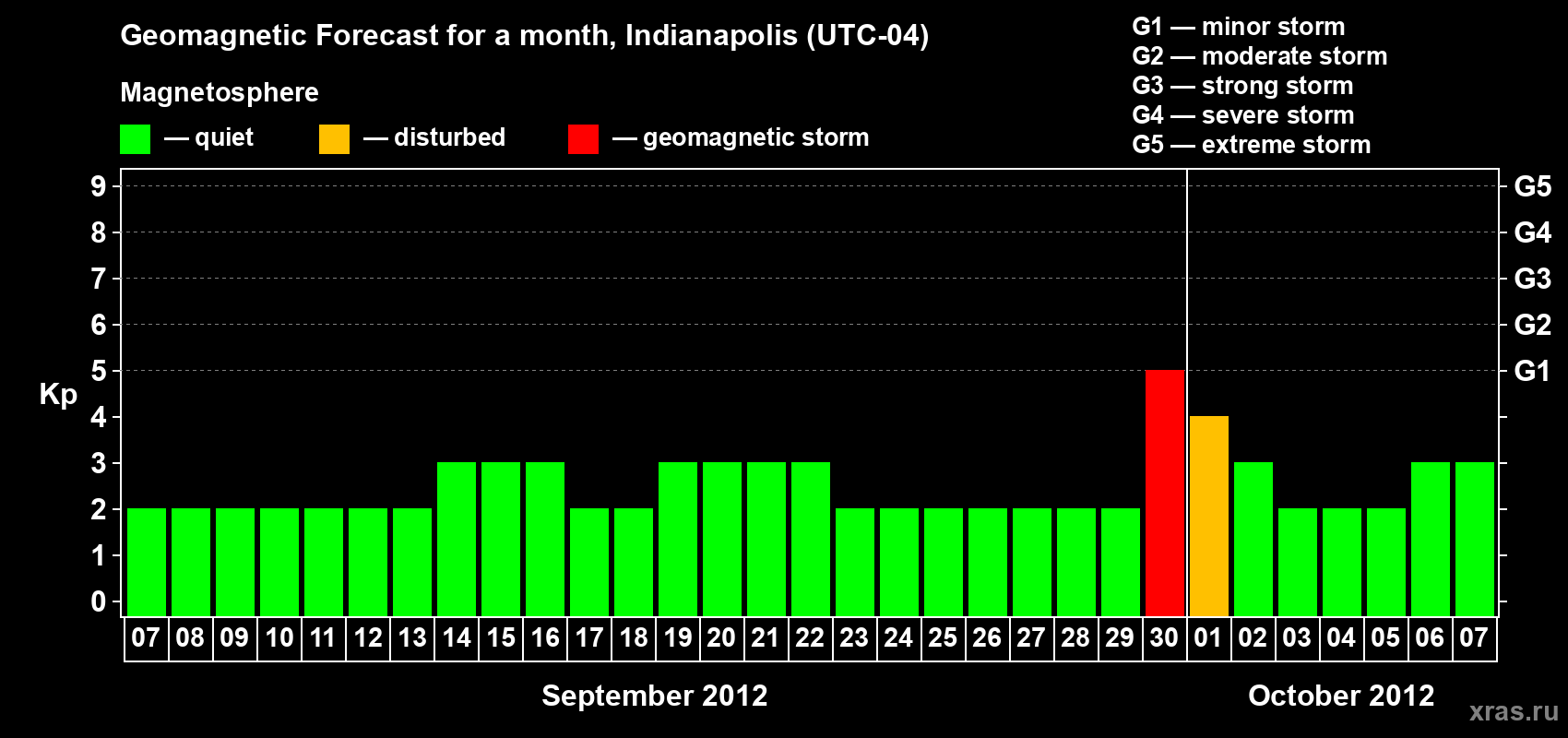 Geomagnetic storm forecast in Indianapolis for Sep 07, 2012