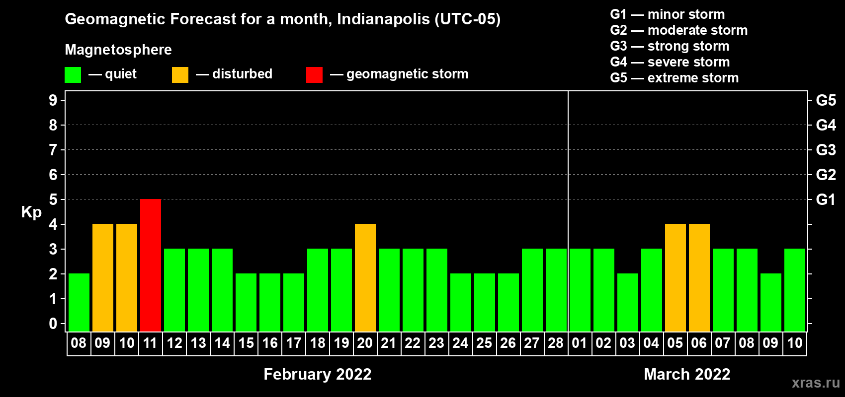 Geomagnetic storm forecast in Indianapolis for Feb 08, 2022