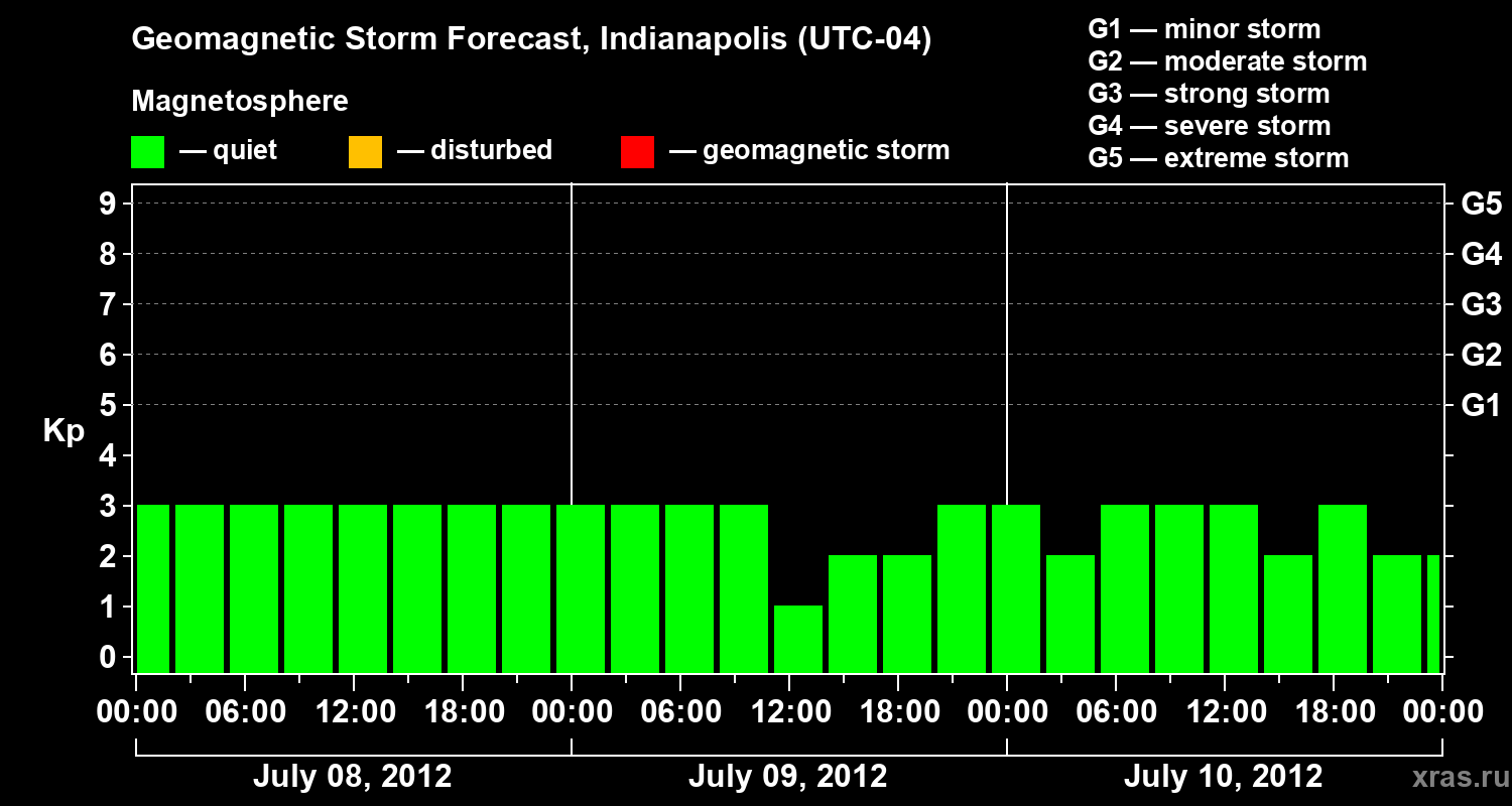 Geomagnetic storm forecast in Indianapolis for Jul 08, 2012