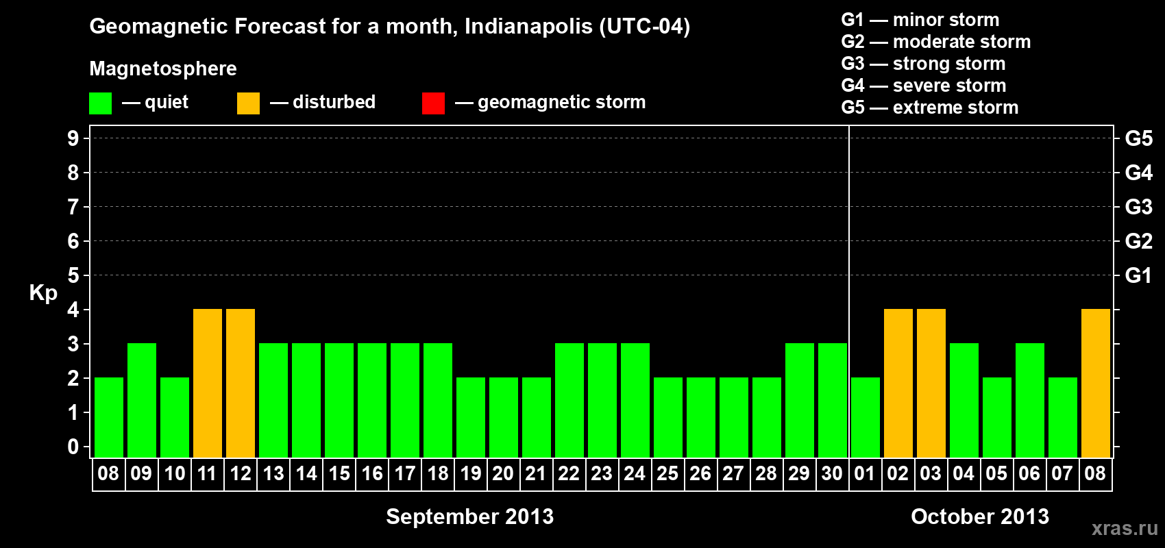 Geomagnetic storm forecast in Indianapolis for Sep 08, 2013